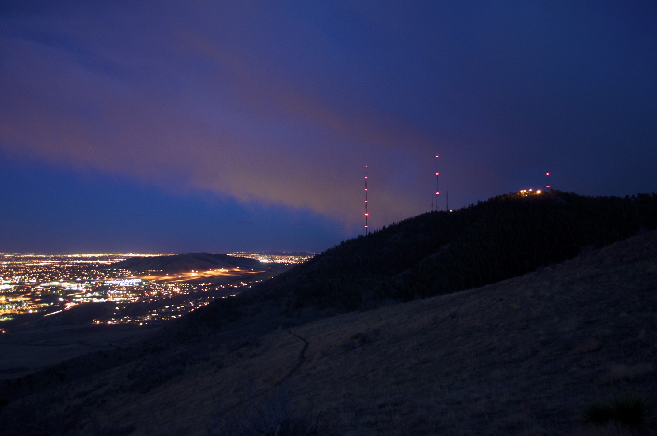 Well, once upon a time, me and some friends decided to hike Mount Zion right outside of Golden, CO. I also brought my camera along. The idea of the evening was to get up on Mount Zion before the sun set and get some sweet sunset pics of the sun as it set over the Rockies. When we got up there, we realized that there was a band of clouds lining the mountains that obstructed our view of the sunset. Talk about disappointing. This forced us to reevaluate the types of pictures we were planning on taking. We were no longer going to have an awesome sunset to shoot, so we got creative. I got one of my favorite pictures ever tonight. The picture of Jay standing against the clouds was absolutely spectacular. Anyways, these are some of the resulting images.